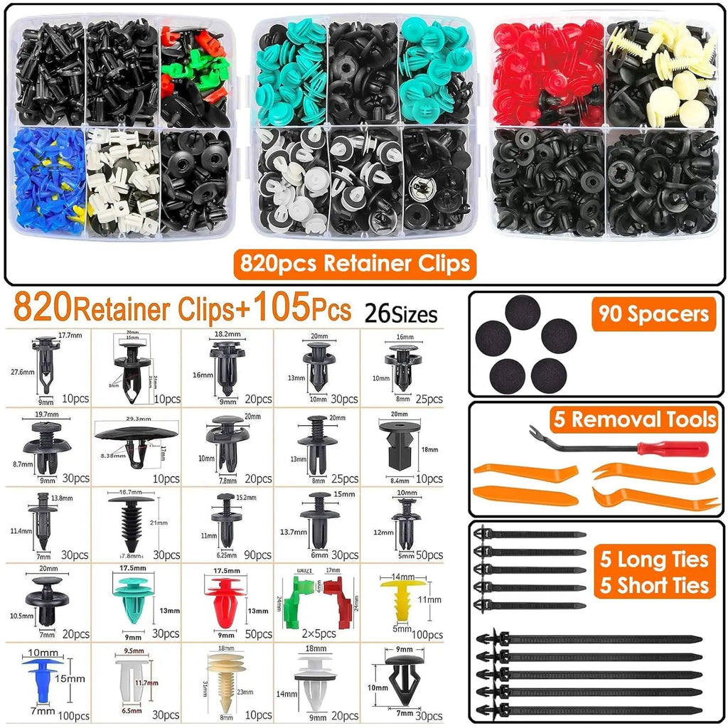 Conjunto de 925 Presilhas Automotivas com Ferramentas de Remoção — Rebites, Grampos e Fixadores Plásticos para Carro, Para-choque, Porta e Para-lama.