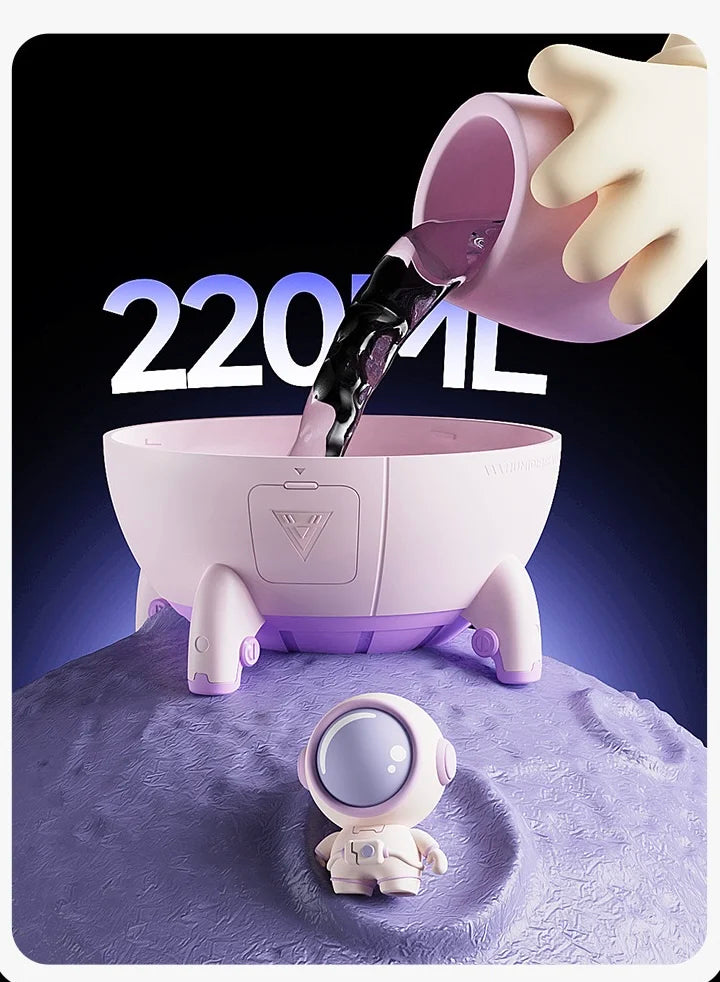Transforme qualquer lugar em um espaço mais leve, úmido e cheio de personalidade com este Umidificador de Aromas em formato de cápsula espacial, acompanhado de um adorável boneco astronauta. Um toque futurista que deixa sua casa, escritório ou quarto muito mais acolhedor!